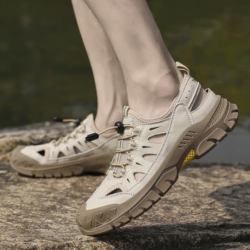 Men's Leather Cutout Lace-Up Platform Hiking Sandals Summer Lightweight Breathable Outdoor Casual Beach Sandals for Outdoor Walking Driving 6
