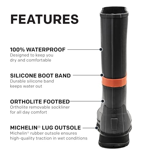 • Outer material: PU midsole, waterproof construction, reinforced critical wear points, durable commercial-grade 3mm neoprene lining, removable Ortholite™ sockliner, molded heel kick plate, integrated silicone boot band