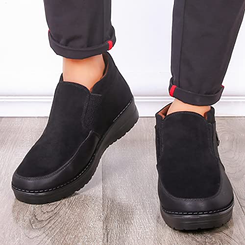 • LIGHTWEIGHT AND COMFORTABLE: This fur-trimmed mens snow boots lends lasting warmth while never going out of fashion.It come with a light weight to offer a long-lasting comfy wearing with health care and feet guarding.