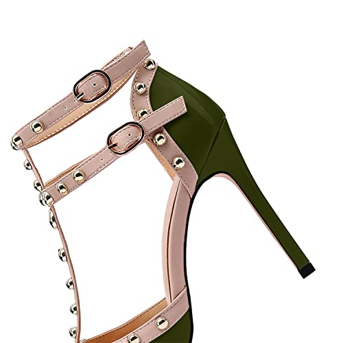 XINIUNIU Stiletto High Heels for Women Studded Heels with Studs Pumps 4 Inch Heeled Sandals Sexy Pointed Toe Ankle-strap Patent Leather Dress Wedding Shoes 5