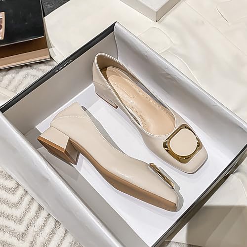 HOT ! Women's Square Toe Metal Buckle Heels Comfortable Slip On Patent Chunky Low Block Heel Pumps Outdoor Classic Dress Wedding Office Party Shoes