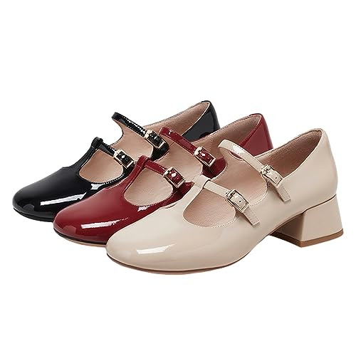 More information about FOWT Women Round Toe T-Strap Pumps Ankle Buckle Block Low Heel Mary Janes Elegant Dates Party Wedding Dress Shoes Size 4-16 US