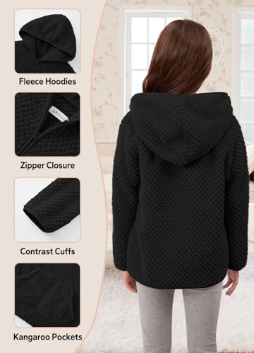 IMMER Girls Winter Full Zip Sherpa Fleece Long Sleeve Solid Hoodie Fuzzy Jacket Outwear Coat with Pocket 4-14 Years 3