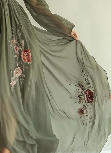 More information about Womens Green Tulle Floral Beach Cover Up Sundresses with Belt Long Sleeves V Neck Summer Ruffle Tiered Dresses