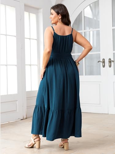 • Boho Style: This plus size maxi dress comes with a sleeveless, drawstring square neck, smocked elastic, adjustable spaghetti straps, open back detail, maxi dress with slit, long dress, slip dress, high waist, flowy ruffle hem, a-line dress, milkmaid sundress, turn heads in this flowy sun dress, accentuating your figure and creating a flattering look
