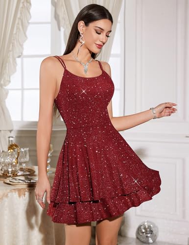 HomRain Women's Spaghetti Straps Backless Dresses Sparkly Short Dress for Homecoming Cocktail Dress for Wedding Guest 1