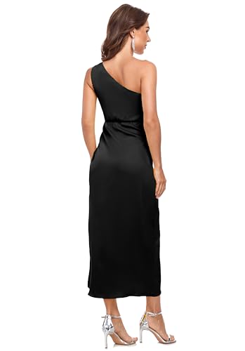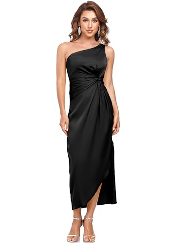 More information about Women's One Shoulder Satin Silk Backless Split Wrap Hem Twist Ruched Summer Party Cocktail Midi Dress