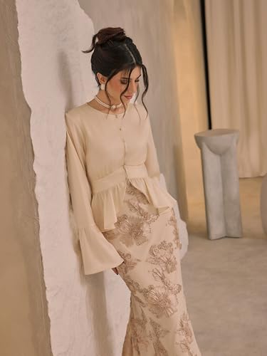• Luxurious Jacquard material: Made from high-quality Jacquard fabric, this dress offers a luxurious look and feel. The intricate weave of the Jacquard material adds depth and texture to the dress, elevating its overall aesthetic and providing a sophisticated touch that sets it apart from ordinary dresses