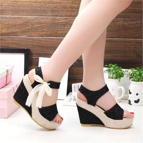 • Comfortable : This Summer Lace Bow-Knot Strap Open Toe Fish Wedge Platform Sandals, These feature a breathable open toe and adjustable ankle strap for a secure, This Platform Wedge Sandals, customized fit, perfect for all-day wear