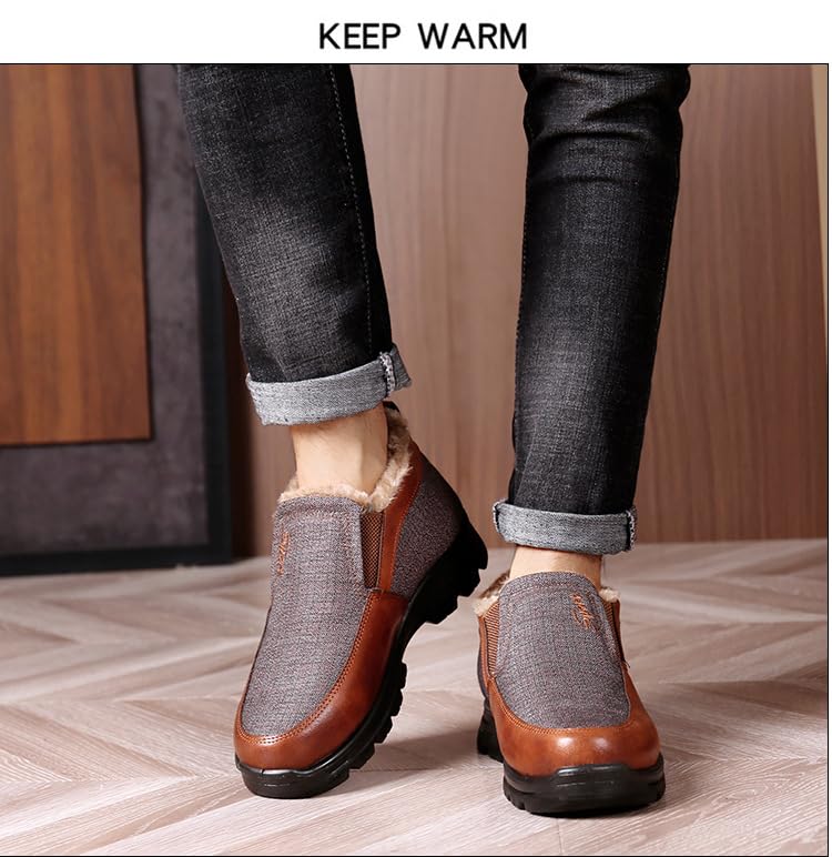 Men's Snow Shoes Casual Slip-on Winter Warm Loafers Shoes Fur Lined Ankle High Lightweight Non-Slip Snow Boots for Elderly Walking 7