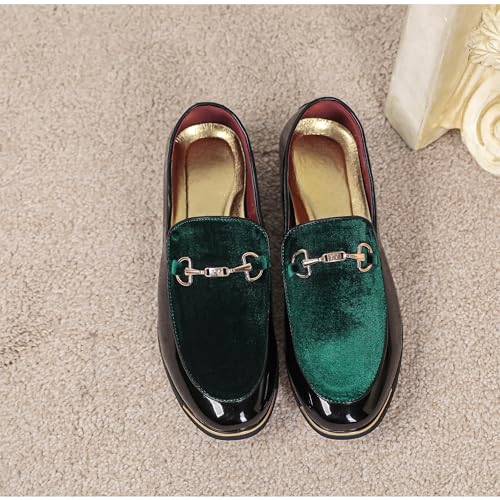 LCQL Men's Luxury Velvet Loafers Patent Leather Oxford Classic Gold Buckle Business Party Prom Club Dress Shoes Size 7-13 5