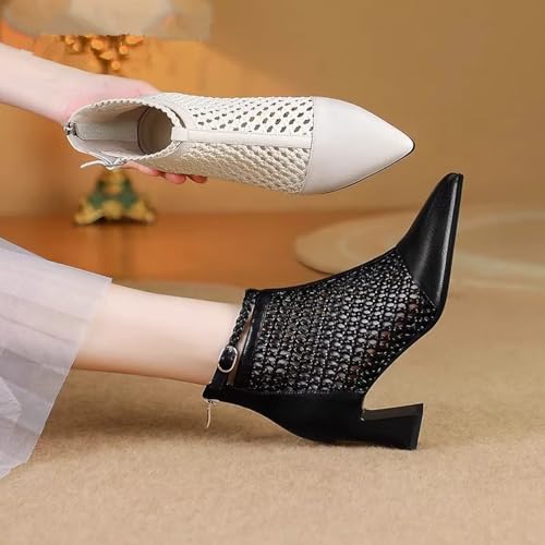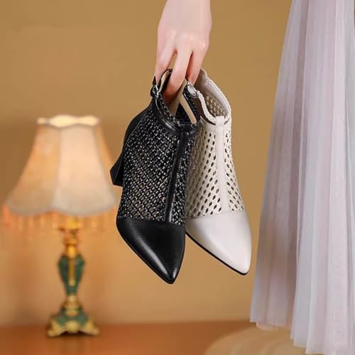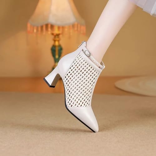 Women's Soft Leather Breathe Hollow Out Block Heel Ankle Boots Sexy Comfortable Pointed Closed Toe Ankle Strap Summer Back Zipper Chunky Heel High Top Sandals for Work Party Prom 6