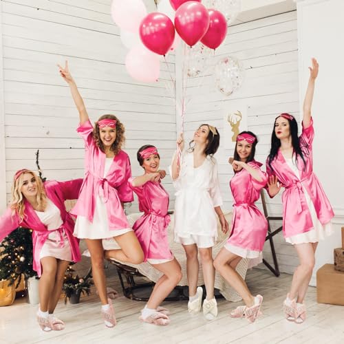 • Comprehensive Package: the package is a delightful ensemble that includes 1 pair of white bride slippers and 6 pairs of bridesmaid slippers in pink; This thoughtful package ensures comfort and utility for the bride and her bridesmaids throughout the wedding preparations and festivities