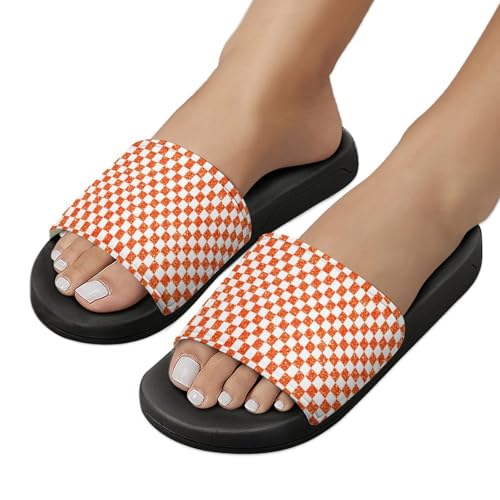 Brown White Checkered Chessboard Flag PVC House Slippers for Men Women Non Slip Outdoor Sandals Home Shoes 7