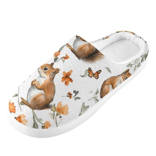 JUNZAN Aesthetic Squirrel White Womens House Cotton Slippers Lightweight Memory Foam Indoor Slippers for Bedroom Birthday Presents 6-7 5