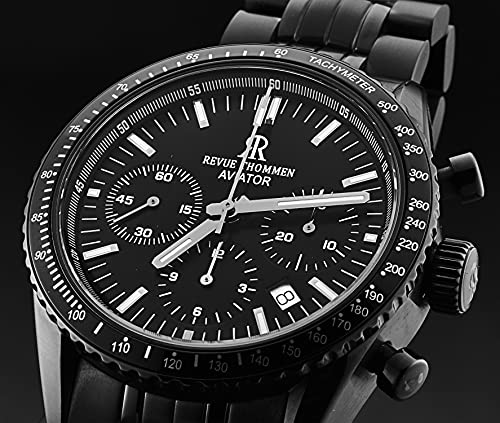 • Revue Thommen Men's 17000.6177 'Aviator' Black Dial Black Stainless Steel Chronograph Automatic Watch