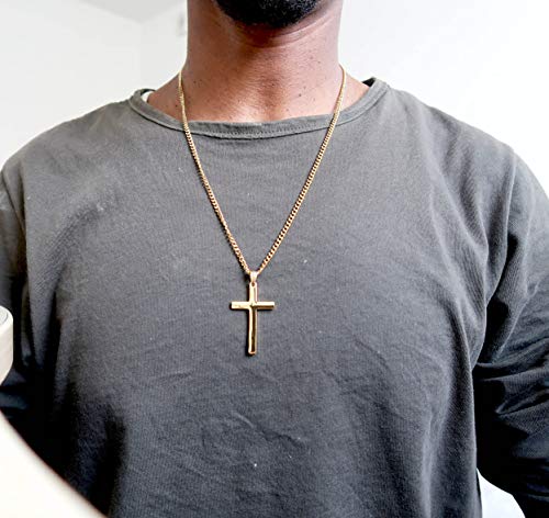 • SIZE INFORMATION - The gold cross pendant is 42mm height and 29mm wide. The included SOLID GOLD Figaro Chain is 3mm wide.