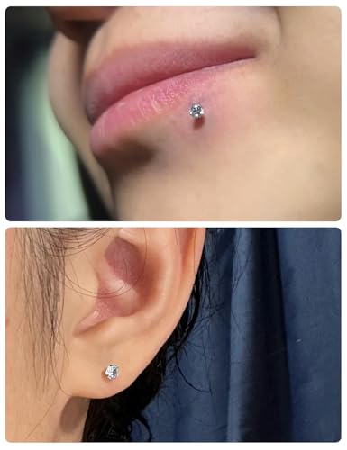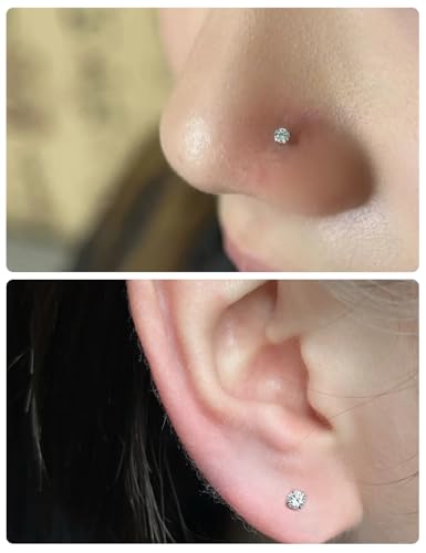 • Top Quality: Internally threaded nose rings studs made of high quality ASTM F136 titanium and 5A cubic zirconia, safe material, harmless your skin. flat back studs earrings surface are smoothly polished, easy to clean, easy to put in and out, very comfortable to wear.