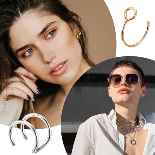 HOT ! Nose Rings Hoops Double Hoop Nose Ring, 10 Pcs Fake Noses Ring Lip Rings Stainless Steel Fake Lip Piercing Clip On Ear Cuffs Non Piercing Jewelry for Women Men, 8mm
