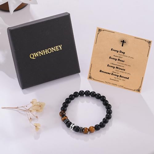 HOT ! QWNHONEY Cross Bracelet for Men Son Brother Boyfriend Father Dad Husband Father's Day Birthday Christian Religious Faith Graduation Anniversary Christmas Jewelry Gift for Man