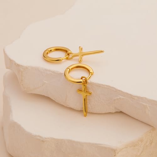 • [Perfect Size] Gold cross hoop earrings are 10mm in inner diameter, and the petite cross dangle measures 16.5mm in length and 8mm in width, perfectly match your various wearing style. With sturdy secure clasps, gold earrings are lightweight and super easy to put on and take off