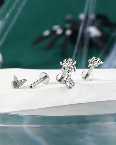 • VALUE PACK: One Order Includes 1pcs bat+1pcs dangling spider +1pcs spider web. 16g Silver Cartilage Conch Earring Stud.
