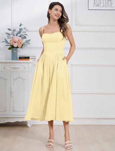 • Casual Dresses for Women: Beach dresses for women, sleeveless casual dresses, Lace-up straps at back midi dresses for women,casual dresses with pockets, spaghetti strap, scallop neck, backless, corset, classic solid color, low cut, side with pockets, flowy A-Line shape, above ankle length. Two handy on-seam pockets at two sides, free your hands and store your own belongings for a relaxing travel.