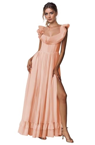 Tianzhihe Women‘s Ruffle Chiffon Bridesmaid Dresses with Slit Pleated A Line Formal Party Gowns for Women 1