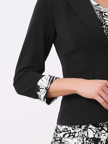 Allegra K Women's Dress Suit Sets 2 Pcs Chiffon V Neck Floral Print Contrast Panel Work Jacket Dresses 3