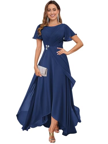 More information about AUMEELAM Ruffled Sleeve Chiffon Mother of The Bride Dress Scoop Neck Beaded Ruched Wedding Guest Dresses