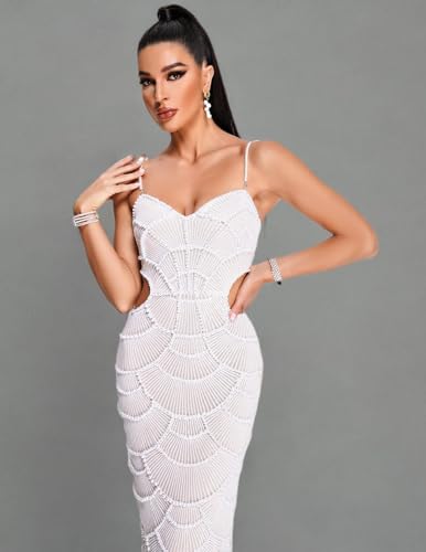 • Features: white midi dress, pearl, sequin, spaghetti strap, cutout, backless, back slit, bodycon, suitable for parties, cocktail party, club, or night out and so on.