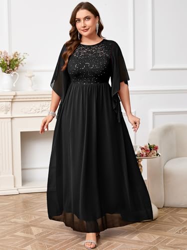 ZOMVA Plus Size 0X-4X Formal Dress Sequin Lace Chiffon A-line Maxi Dress Handkerchief Sleeve Evening Wedding Guest Prom Gown 4