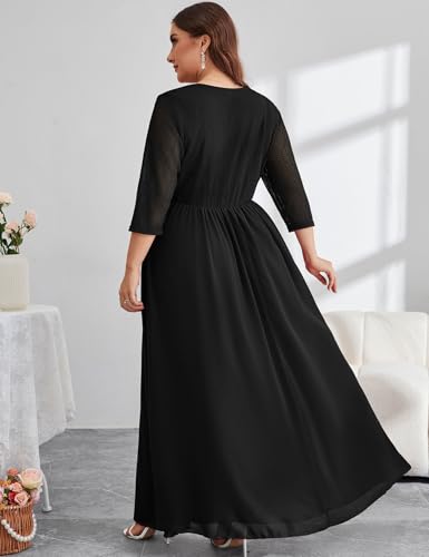 ZOMVA Plus Size Maxi Formal Dress Lace Chiffon Floral V-Neck Wrap Wedding Guest Evening Gown Cocktail Prom 3/4 Sleeves 3