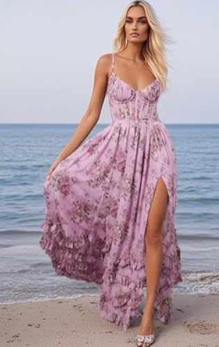 • Features:Spaghetti Straps Boho Floral Bridesmaid Dresses for Women 2025,Tiered Ruffle Slit Prom Party Cocktail Dresses for Teens Gowns,Corset V-Neck A-Line Formal Evening Gowns for Wedding Guest