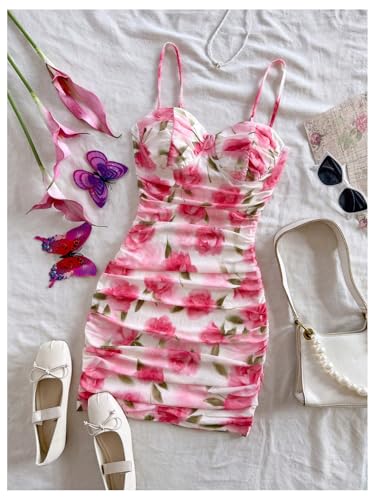 Verdusa Women's Floral Dress Ruched Bodycon Night Out Mini Dresses Going Out Outfits 1