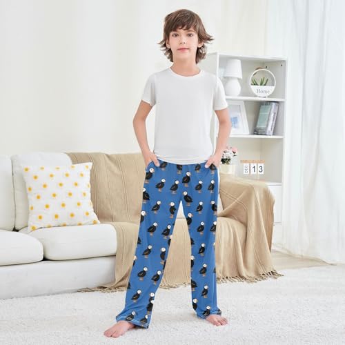 Cartoon Puffins Blue Pattern Pajama Pants Soft PJ Bottoms Lounge Pants for Sleepwear Sport Size 6-14 Years 1