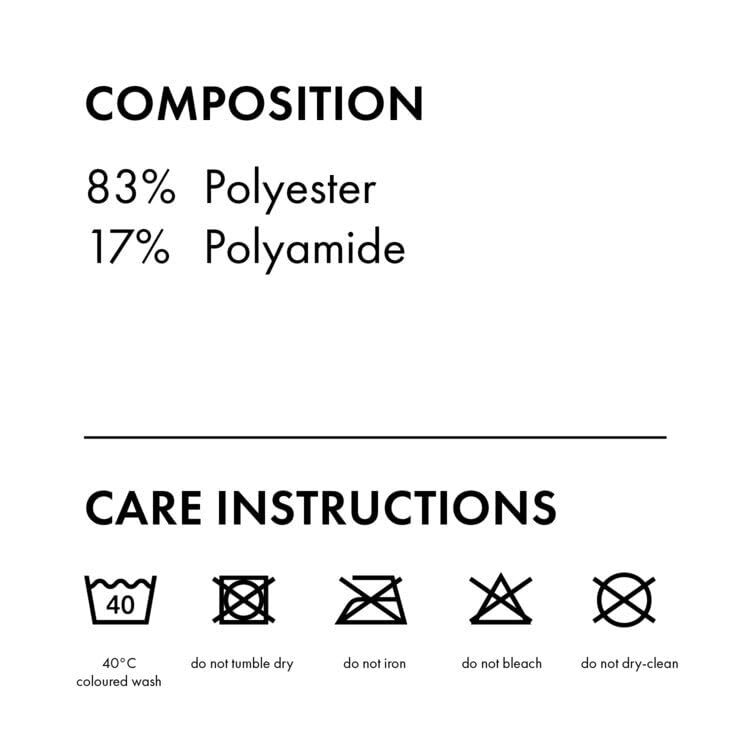 • Fabric type: 83% Polyester, 17% Polyamide