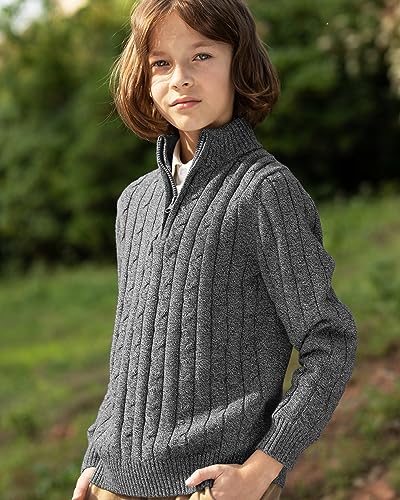BOBOYOYO Boys Sweater Qurter Zip Pullover 100% Cotton Cable Knit Sweater Casual Long Sleeve Turtleneck for Kids 3-16 Years 5