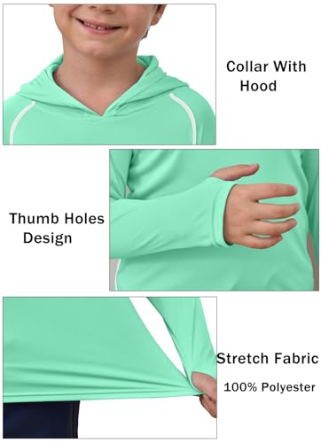 Boys Girls Hooded Sun Shirts UPF50+ Long Sleeve Hoodies Quick Dry Rash Guard Swim Shirts Fishing Hiking Thumb Holes 5