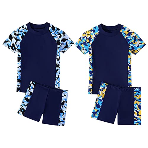 Boys Kids 2 Piece Beach Swimsuits Sets Short Sleeve Dinosaur Raglan Swim Tees and Trunks Shorts Toddler Boy Clothes 4t 2