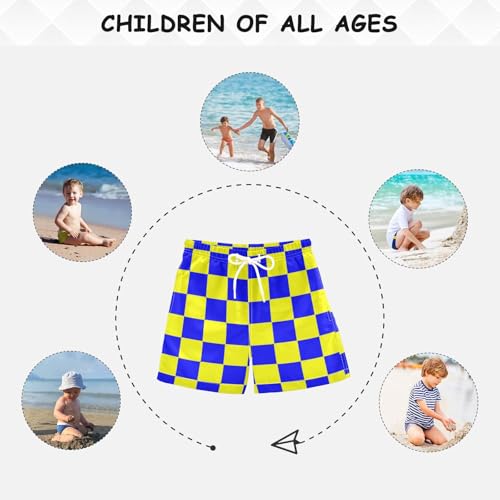 Buffalo Plaid Check Blue Yellow Sport Shorts Teens Swimming Board Shorts Lightweight Compression Liner Swimwear 2T 5