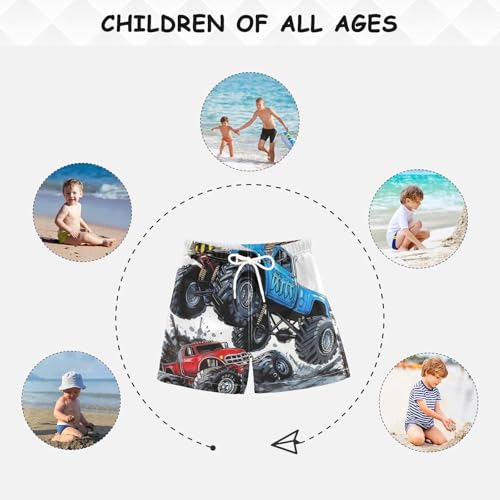 Pigsaly Boys Swim Trunks Two Blue Monster Truck Boys Board Shorts Swimsuit Swimwear Summer Bathing Suit 4T 3