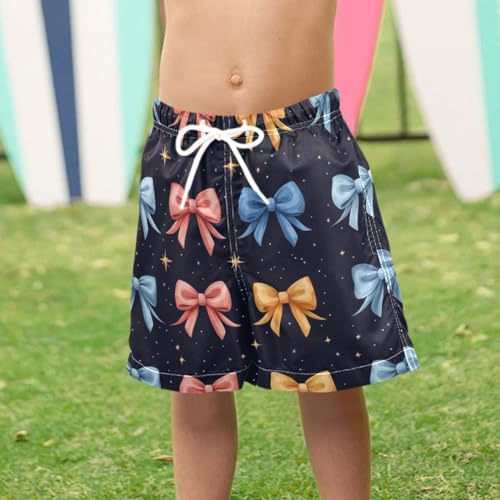 Pigsaly Boys Swim Trunks Blue Pink Cute Ribbon Bow Boys Board Shorts Swimsuit Swimwear Summer Bathing Suit XS 3