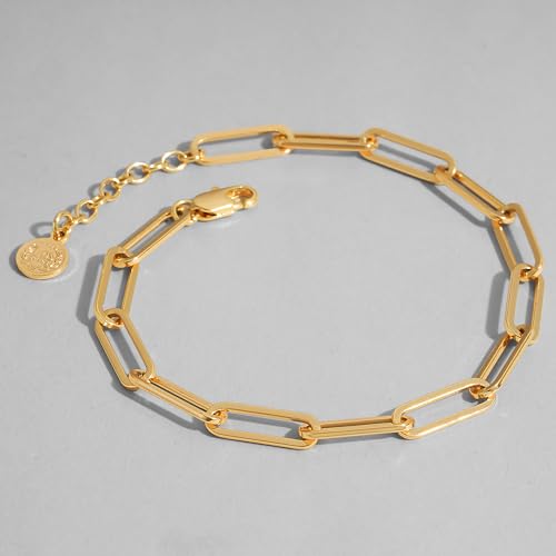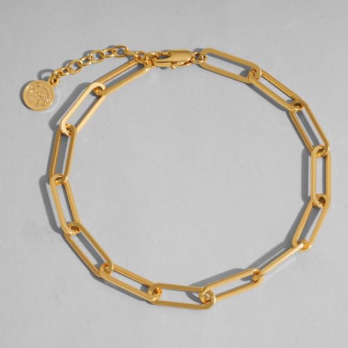 Dremmy Studios Gold Bracelet for Women 18K Gold Plated Dainty Paperclip Cubic Zirconia Disc Coin Star Cable Satellite Bead Pearl Simple Boho Minimalist Stacking Layered Link Jewelry Gift 5