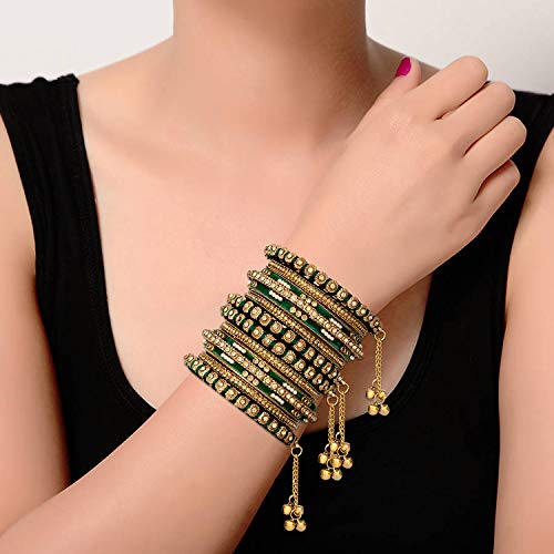 Aheli Wedding Party Designer Faux Stone Studded Bridal Bangle Set Chuda with Hangings Indian Traditional Bangles Ethnic Fashion Jewelry Gift for Women Blue 5