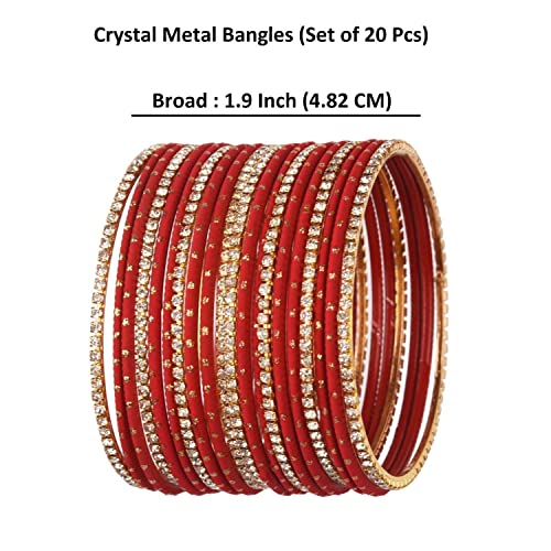 • Bangle Size (Indian) : 2-8, US Size: L (Inner Diameter- 2.5 Inch, Circumference- 7.85 Inch), Set Content- Total 20 pieces (8 cz crystal bangles & 12 plain metal bangles).