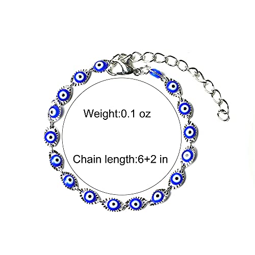 • Silver evil eye bracelets for women:Bracelet length: 6+2in (extended chain),weight: 0.11 ounces, the size of the bracelet can be adjusted at will according to the size of the wrist.