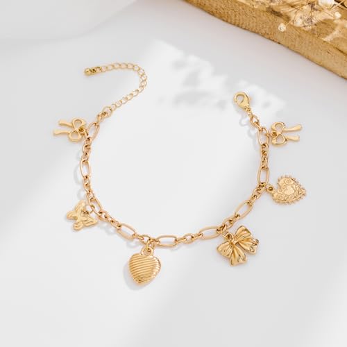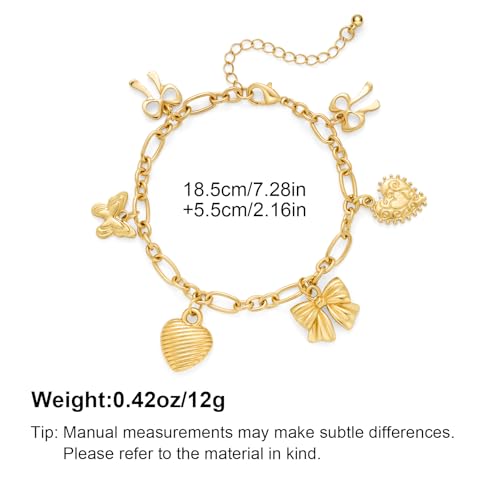 • Charming Design Elements:This bracelet features an exquisite combination of gold - tone charms, including delicate butterflies, hearts, and bows. Each charm is intricately crafted, adding a touch of whimsy and elegance, making it a perfect accessory for those who love feminine and stylish jewelry.