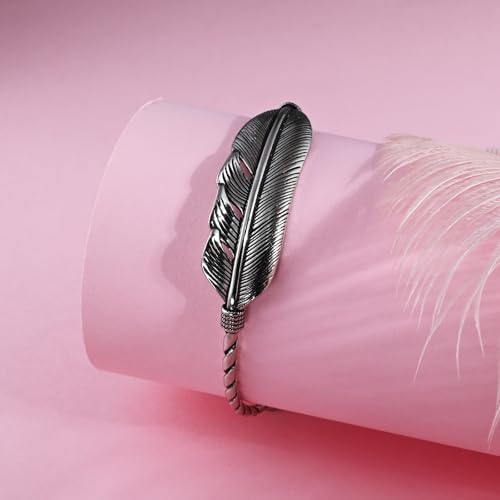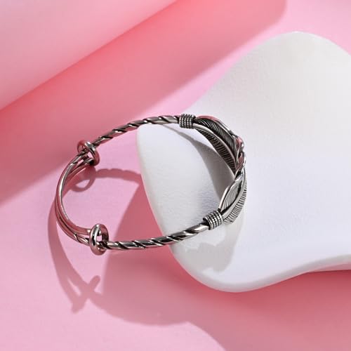 • [Charming design] The silver bangles bracelets combines the essence of nature and art, with feathers as a symbol of freedom and elegance cleverly integrated into the design of the bracelet. The bracelet is made entirely of silver metal material, and the texture of the feathers is vividly depicted as if gently swaying. The spiral design on both sides is like a staircase leading to freedom, showcasing a graceful beauty
