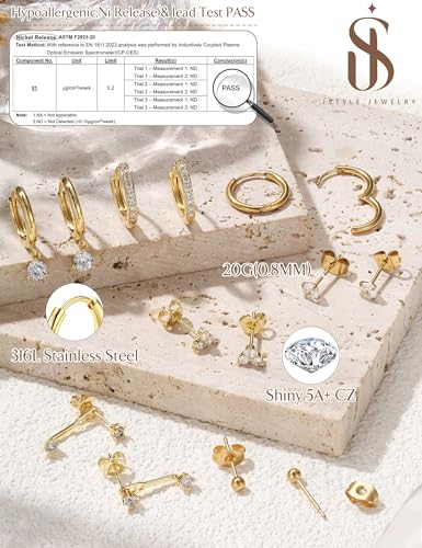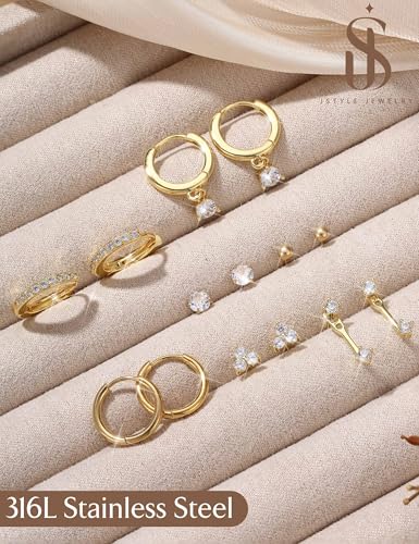 HOT ! Jstyle Hypoallergenic 14K Gold Plated Stud Hoop Earrings for Women - Surgical Stainless Steel Earrings Trendy Small Hoops Cartilage Earring Stacks Huggie Earring Set for Multiple Piercing Jewelry